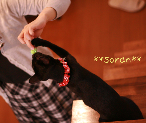 この後、ウニ玉に夢中で走り回るソランくんの撮影が追いつかないので(動く動くw)