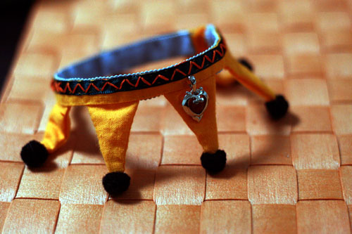 マジックテープの首輪、blueさんの琉球紅型風の首輪もそうでしたが、あれ良いですね!付けたり外したりが簡単だし