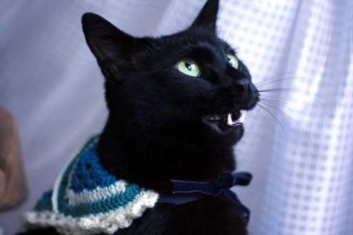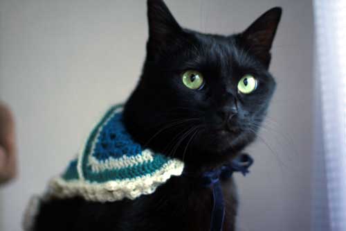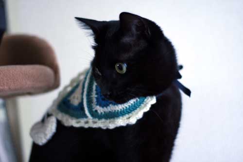 今回も似あいますね~!黒猫はブルーも似合うんだあ♪