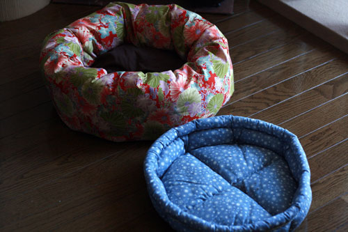 私はベッドは作れないけど座布団(猫用)をまた