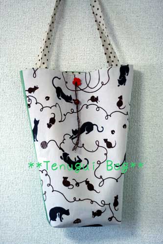 お散歩バッグはシンプルな柄に黒猫ボタンがすごく可愛い♪♪