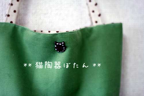 黒ネコ陶器ボタンが付いたバッグも可愛いし。