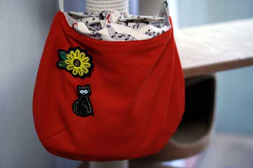 きゃん☆毛マラちゃんのブローチをポイントにしたお手製バッグ素敵〜〜