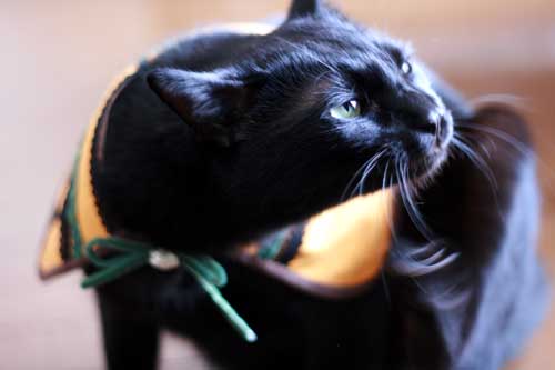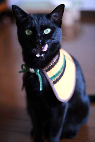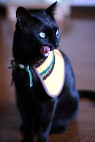 おとうはんの妹Aちゃんが作ってくれた黒猫アップリケを付けて