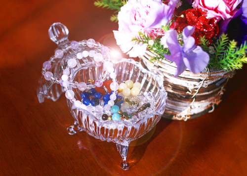 ママさんが作ってくれた、ローズクウォーツのチャームをしています。