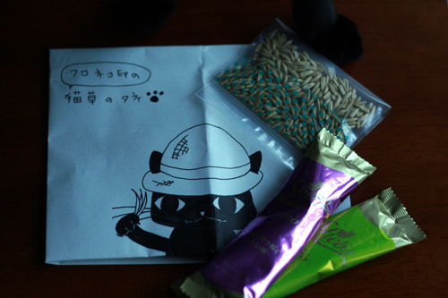 *ちなみに、この猫草(種)はつむぎチェック済みのまさにクロネコ印なのです♪