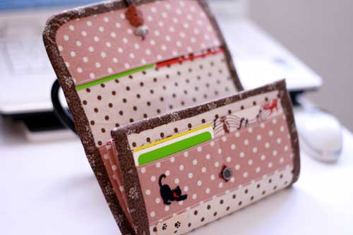 お財布はバイアスがミシンでつけられず、手縫いでやったら
