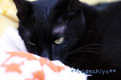 黒猫の寝顔なのにしっかり目とか口とか