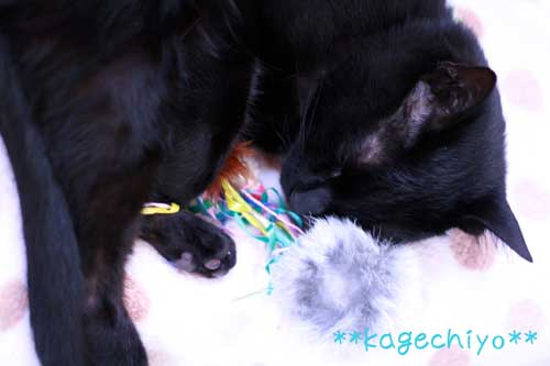 もったいないので、「影千代さまお気に入り玩具」に括り付けてしまいました。