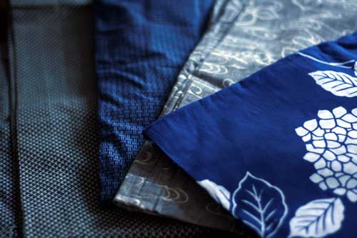 奥2枚は着物。手前のは洗い張りして反物に戻したもの。