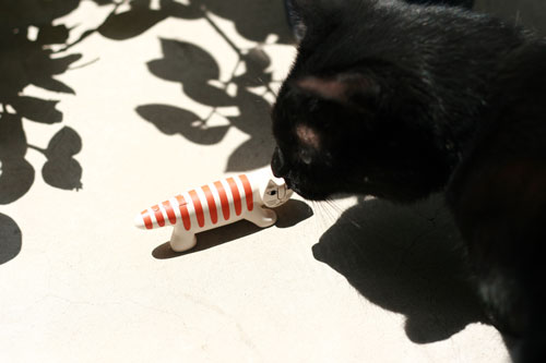 黒猫の影様と赤白のトイカメラのコラボ・・・お洒落だわ!