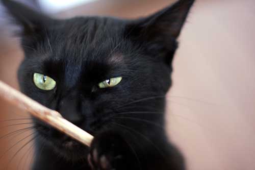 またたびの枝だと舐めもしませんなぁ〜〜。