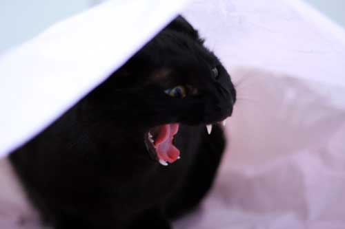 朝から、事あるごとに毛糸の入っているビニール袋を食い千切って