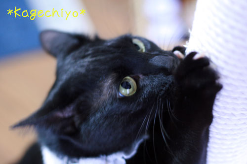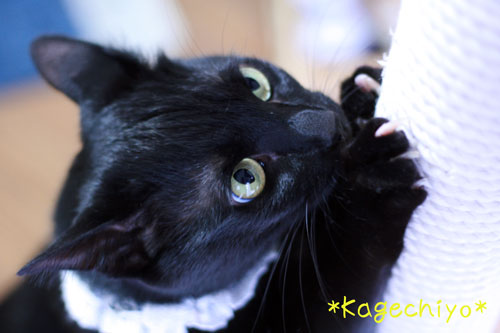 必死でキャットタワーの柱にしがみつく影千代さま・・・・
