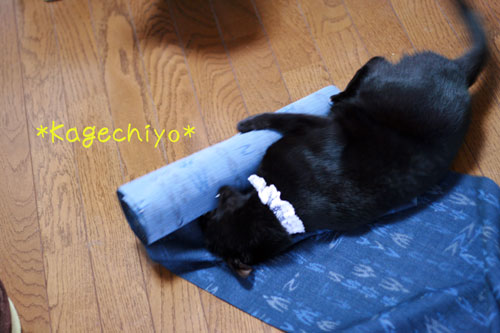 それにしても、ご高級な素敵な布の上で転がる影様!!