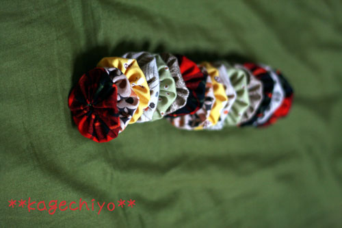 ヨーヨーキルトを繋げただけの、毛虫?玩具w
