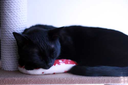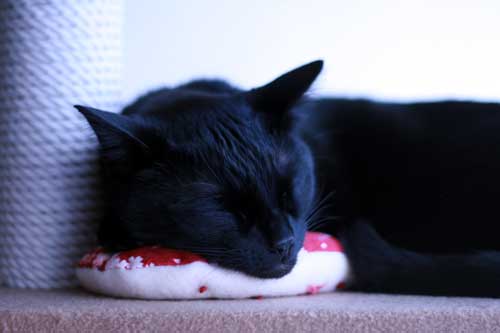猫枕をしながらちょこんと揃えられたお手々、きゃんわい〜〜〜い