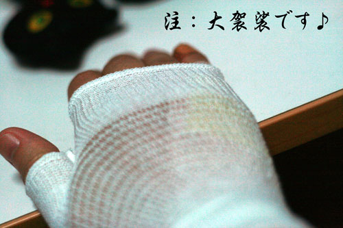 手袋タイプ(?)のネット包帯で固定しました^^;