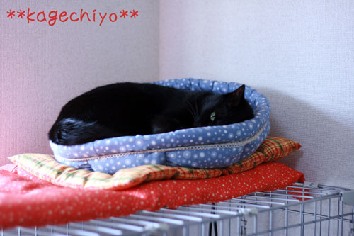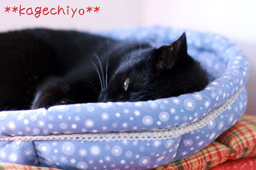 影さま、猫ベッドにぴったり収まって可愛い〜〜〜♪
