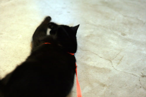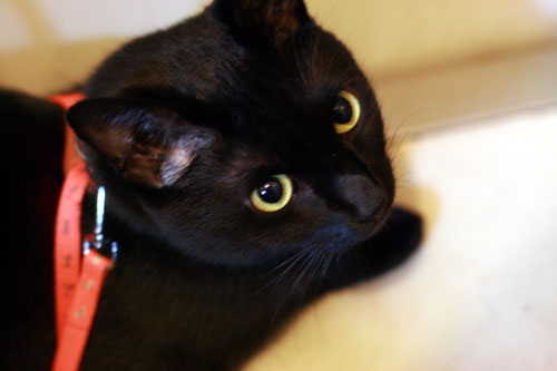 おや、影千代くんはいつのまにやらお散歩にゃんこに?
