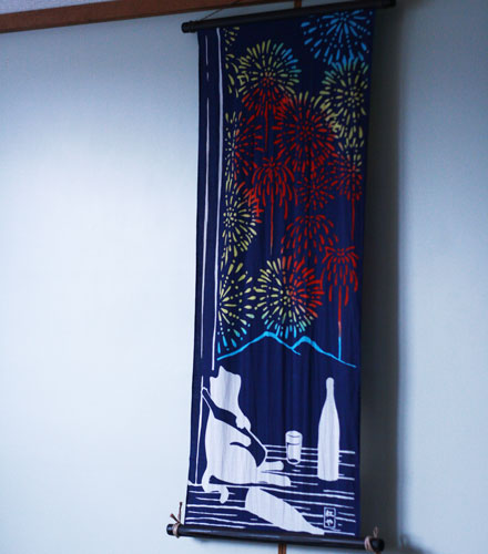 『花火で泥酔(違)』な手拭いを飾っておりました。
