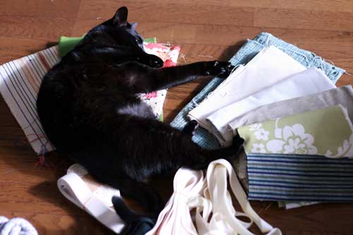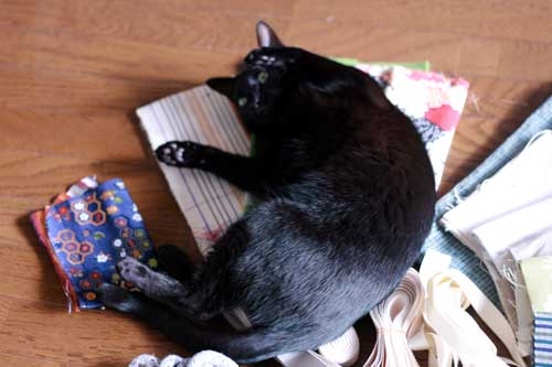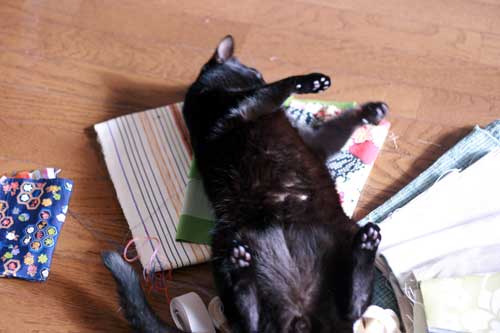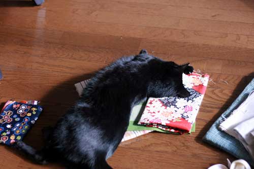 たくさんの布も、らもらさんの制作意欲をいっきにかきたてるのでしょう。。。(影さまの好き好きモードもスィッチオン!!)