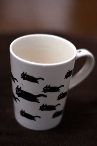 カップ、素敵ですね。手足が短い黒猫がなんとも可愛いです。