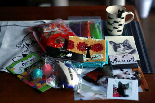 黒猫マグカップ、黒猫タオルハンカチ、黒猫付箋、人用おやつ、猫玩具、猫用おやつ