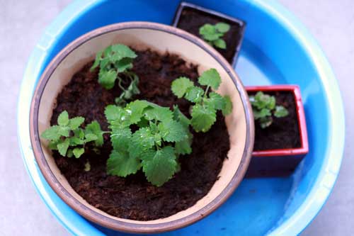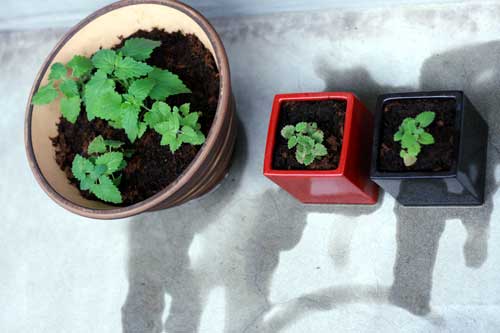 キャットニップの苗、私は外に放り出しましたが、らもらさんは