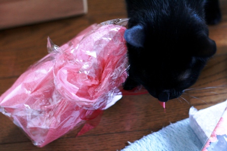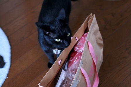 今回のメインプレゼントのおリボンを一生懸命解こうと頑張ってくれてる影ちゃんwww この時点でメインを察知してくれてたんやぁぁぁ