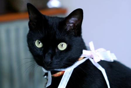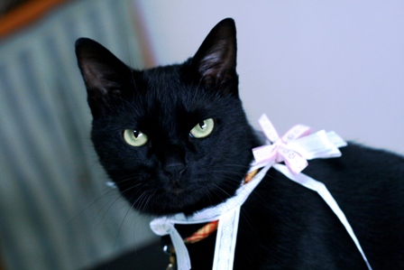 リボンに包まれた影ちゃん、ベビーフェイスで可愛いね。