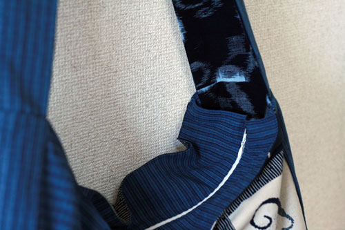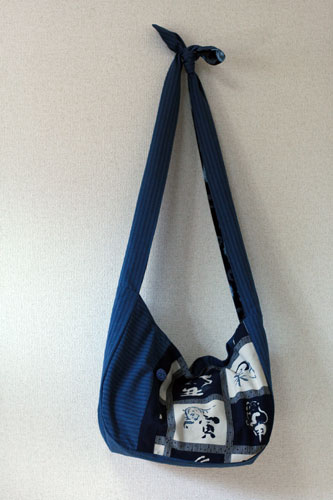 ショルダー部分は結び方で長さ調節可能で、鎌倉スワニーさんの型紙を元にしました