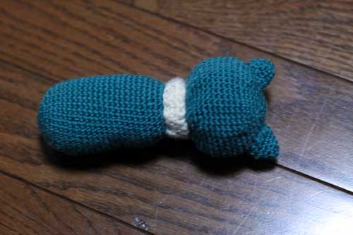 余っていた毛糸で「蹴りぐるみ」を作りました。