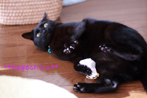 ****今日も出かける前の写真を。またたびの実がぎっしり詰まった巾着袋で大興奮w****