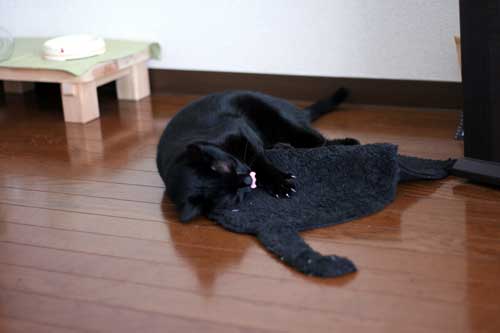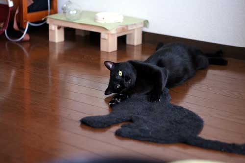 こもも♪さんにもらった「影千代さま専用寛ぎマット」を弄びつつ