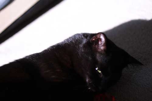黒ネコさんへ風くん&鈴ちゃんは日差しを浴びると