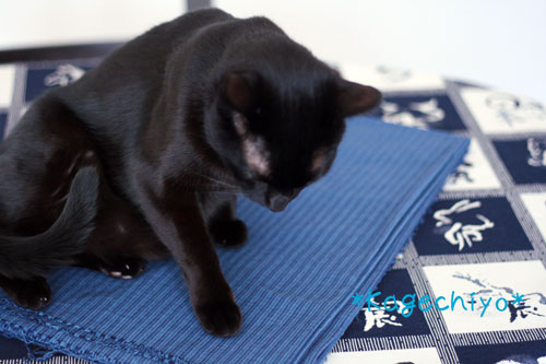 ま、布を敷いたらそこに乗るのが猫さまの勤めですからねぇ、