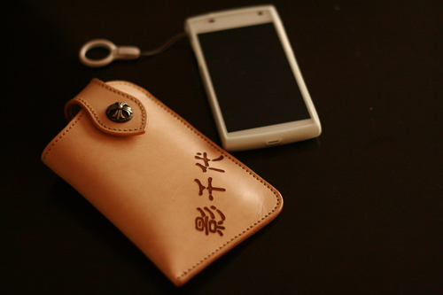 (スマホに変えた時買った、レザーのケース。影千代さまの名前入りw)