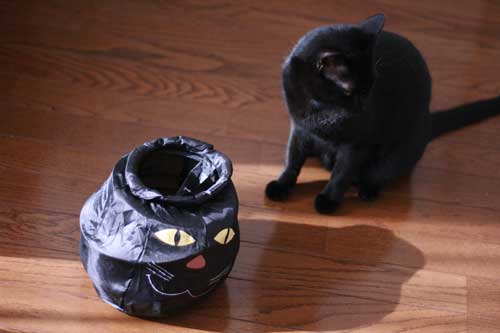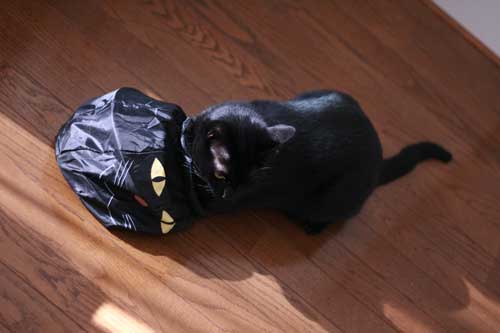 どうりで朝から黒猫ブクロをかぶって疾走してたはずだ、我が家のおこげさん(笑)