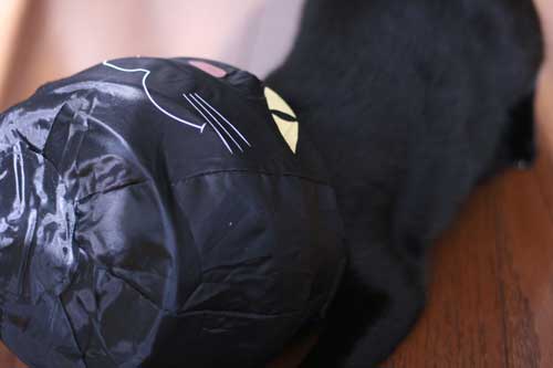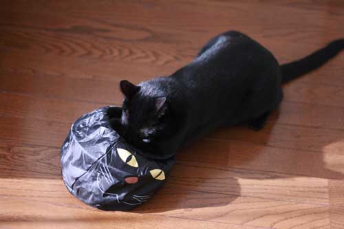 この黒猫ブクロを使って、世界中の黒猫と世界征服の話し合いを行っている