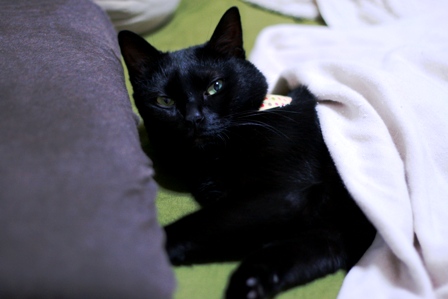 おとうはんの寝床で枕を使って寝ている事がよくあります
