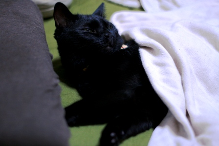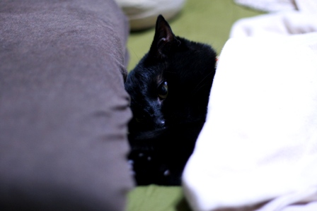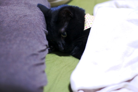 うちの黒毛玉は枕の下に顔を突っこんで寝てます^^;