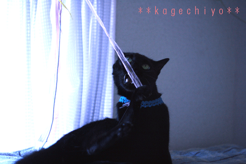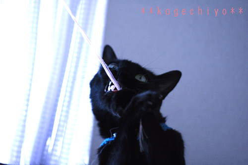 引っ張って、齧って、楽しそうに遊ぶ影千代さま