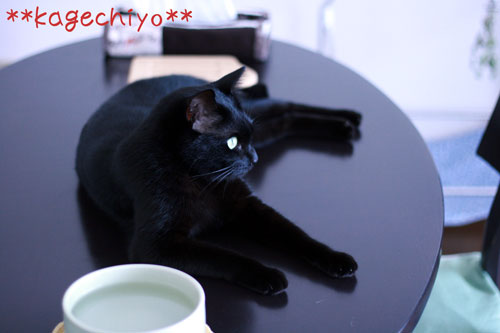 暑さのせいか、わざわざ食卓の上で呆然と横たわっている影千代さまに