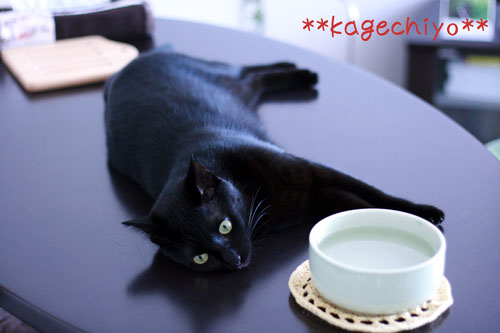 ........とかなんとか言いながら、人間の食卓に影さまのお水置いてるのは だぁ〜〜〜れ!?(^m^)