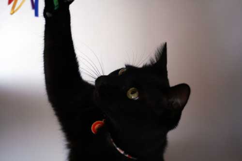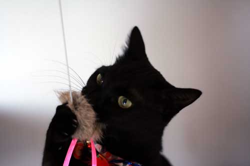 頼んでもいないのに、猫には到底届かない高さで玩具を振り回し