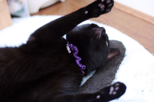 首にアクセントがない黒猫は我が家では「かおなし」と言うざます。