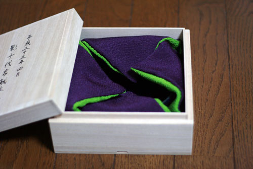 桐の箱を開けると、ちりめんの風呂敷に包まれておりまして・・・