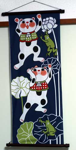 このにゃんカエルさん手ぬぐいかっわいいのにゃあ!