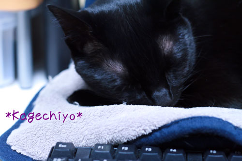 現在こんな状態です(乳母のキーボードの前に臨時ベッド作りました )
